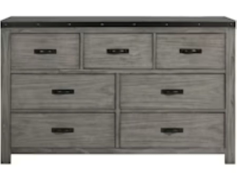 This dresser is sure to win your heart with its daring, designer take on modern rustic. The dresser's crisp, clean and minimalist-chic profile is enriched with a striking replicated oak grain with thick plank styling and a weathered gray finish for that much more authentic character.