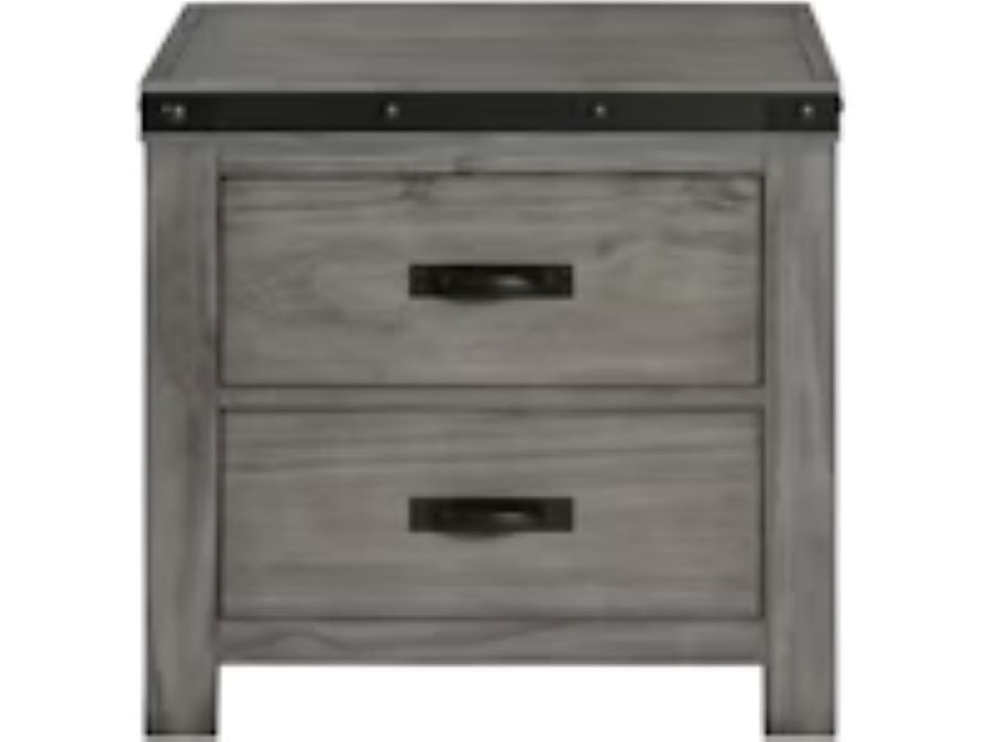 The raised metal hardware and distressed finish of this 2-drawer nightstand are just what you need to complete a farmhouse look in your bedroom. This clean-lined design is made from a mix of solid wood and engineered with a distressed grey finish, and sits on four block legs. Along the surface, a black metal bar with rounded metal accents brings an industrial-inspired design to your space that contrasts nicely with the rustic, lightweight finish. And the two drawers with dovetail seals and metal bar give you all the room you need to store reading glasses, books, and remotes. Plus, we love that its compact size is ideal for small spaces.